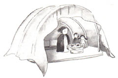 - Naai de gestreken stof met enkele steken aan de voorste boog.