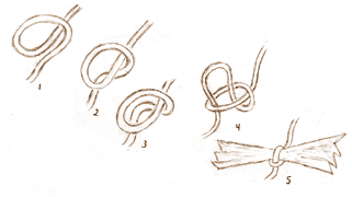 - Knoop het touw stevig vast, strijk er lijm over zodat de knoop stevig blijft zitten, en laat de lijm goed drogen alvorens verder te gaan.