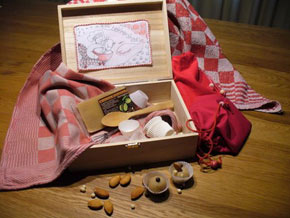 - Het is ook mooi om de doos te versieren met restjes stof.